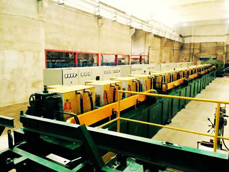 长杆类轧制全自动生产线。包括配套楔横轧机的轴类轧制、配套斜轧机的球类轧制、快速镦锻机锻前加热等。先进的感应器变频设计,在加热过程中通过不同的频率达到最高的综合加热效率,保证产品的加热品质,最大程度节能降耗。机械结构简单耐用,从上料、输送、加热到测温出料为止全程无人工干预。大大降低操作工人的工作强度。